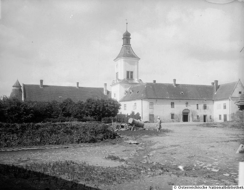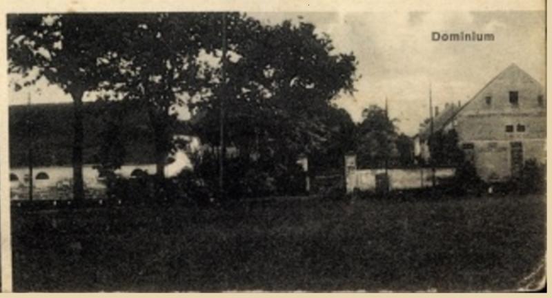 Areál dvora-Dominium (panství) na dobové pohlednici z 1. pol. 20. stol.