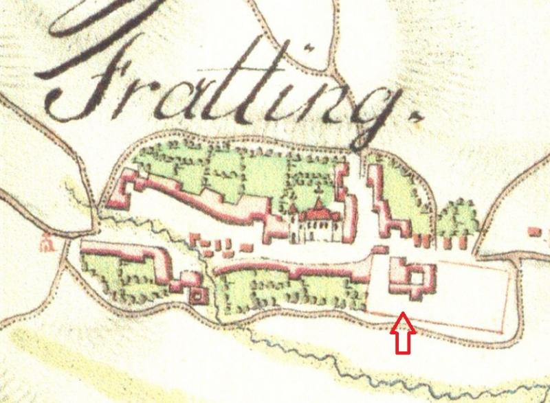 Areál kláštera se zahradou na I. vojenském mapování – josefském z 2. poloviny. 18. století