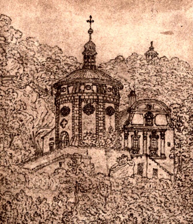 kaple v původním umístění, Vincenc Morstadt, kresba tužkou, 1873