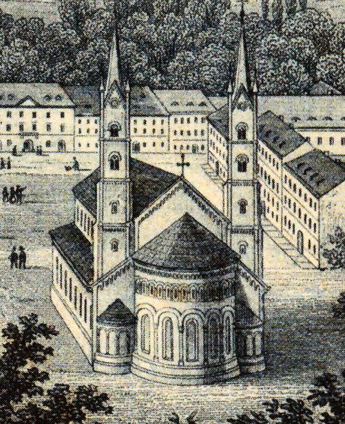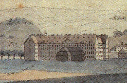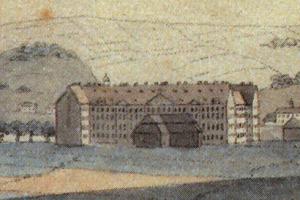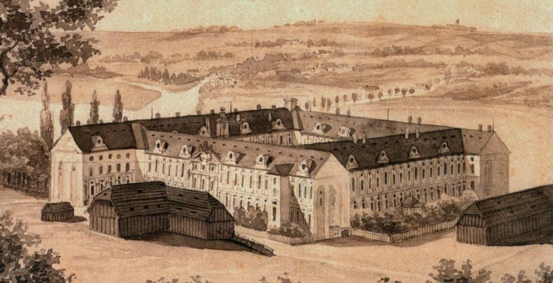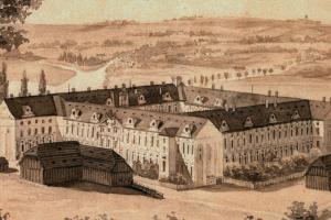 Invalidovna v pohledu od (jihozápadu) Vítkova k Libni v roce 1848