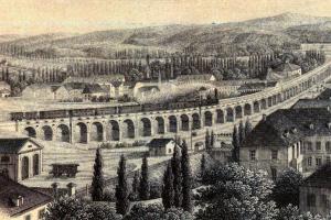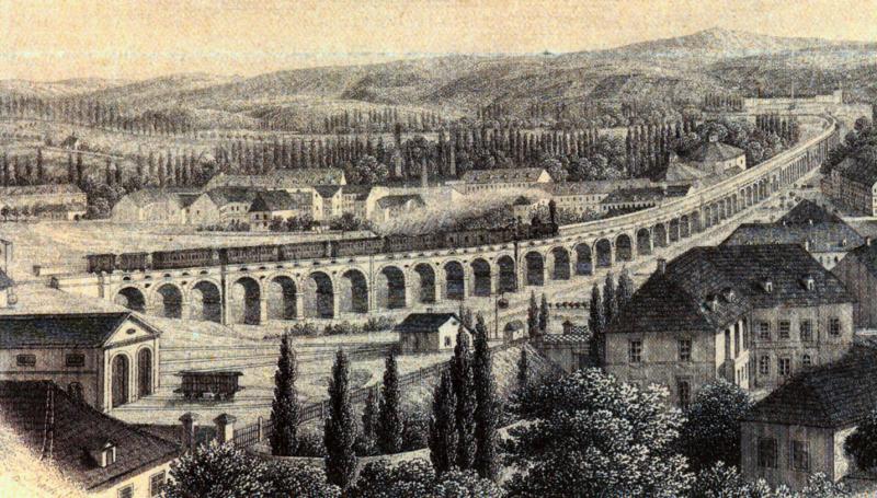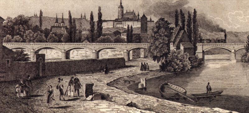 Negrelliho viadukt v pohledu z Vítkova na ocelorytu z roku 1857