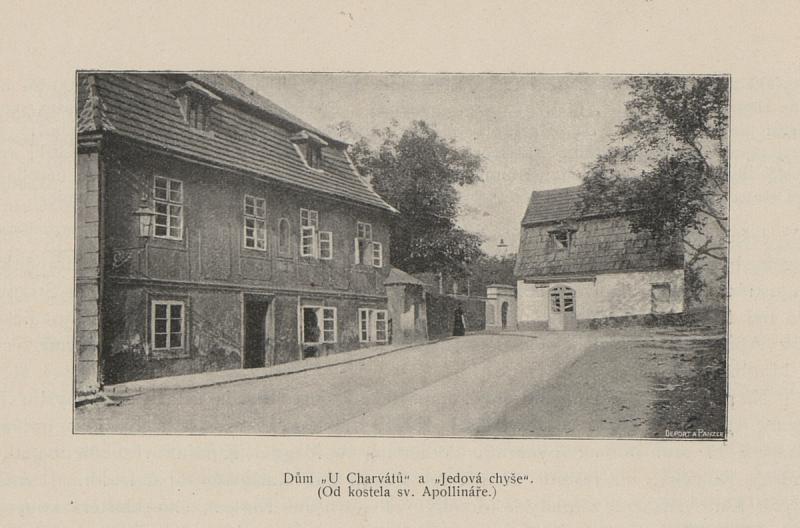 Jedová chýše od kostela sv. Apolináře (r. cca 1900)