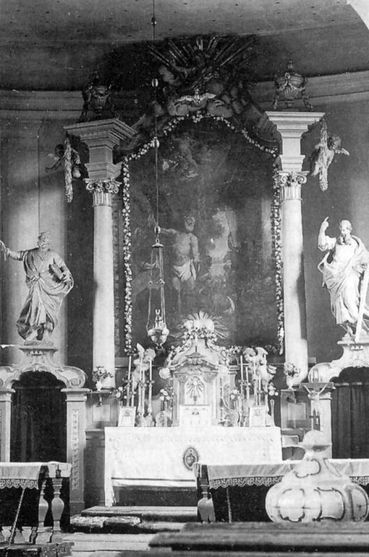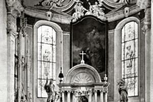 hlavní oltář sv. Bartoloměje doprovázený sochami apoštolů sv. Petra (vlevo) a sv. Pavla (vpravo)