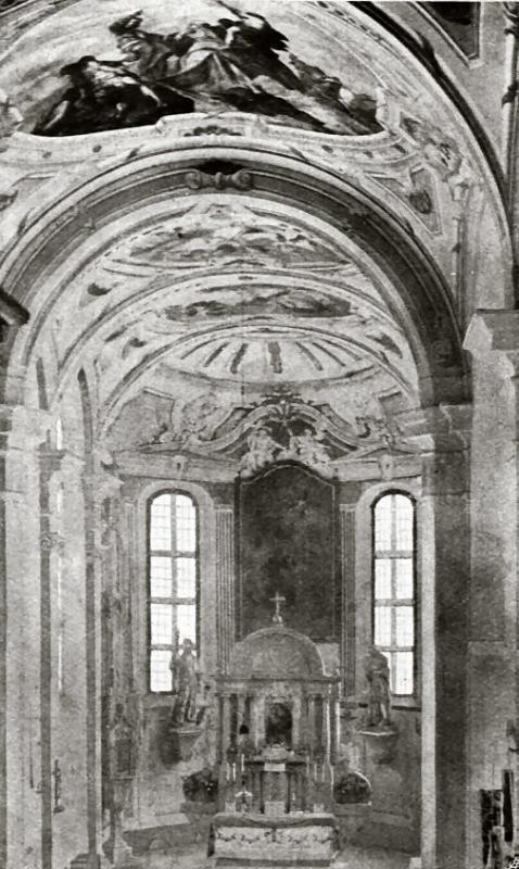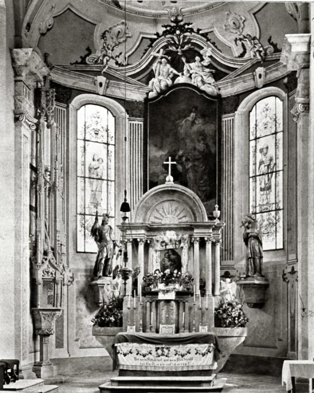 pohled z lodi do presbytáře na přelomu 19. a 20. století