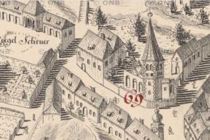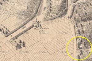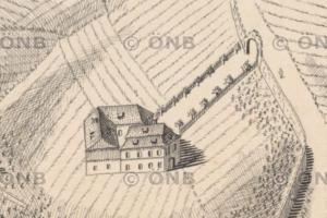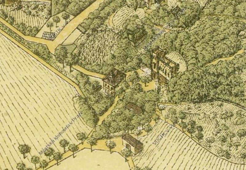 usedlost v původní podobě na plánu Prahy J. D. Hubera z roku 1769