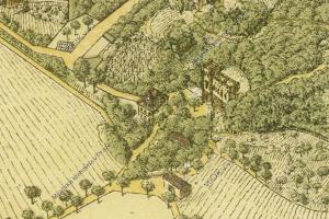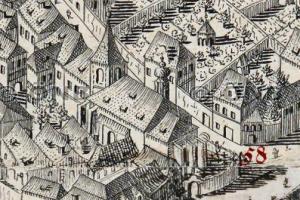 pivovar na perspektivním plánu Prahy J. D. Hubera z roku 1769