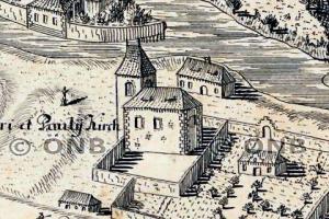 kostel na vedutě F. B. Wernera z poloviny 18. století