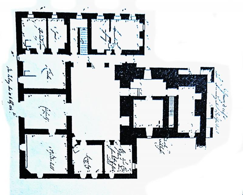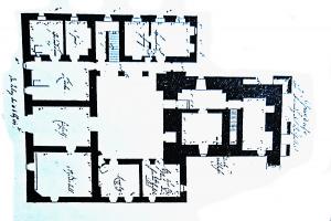 Historický půdorys hradu z 19. století na infoceduli u hradu