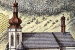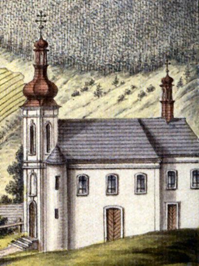 kostel na výřezu z veduty Svojanova od J. A. Venuta (1815)