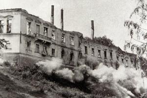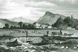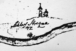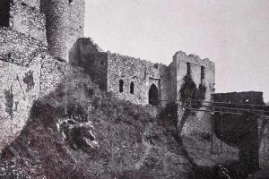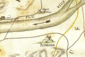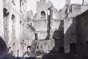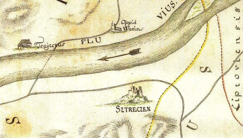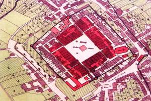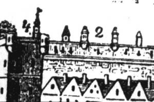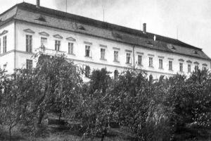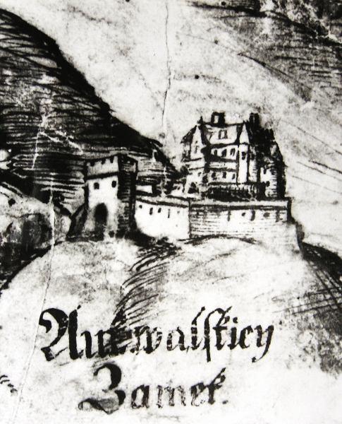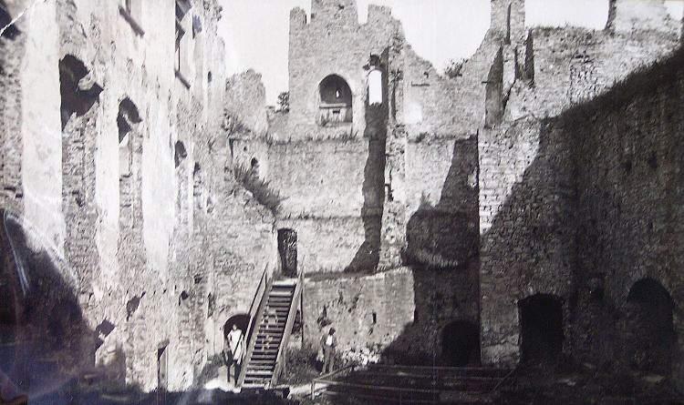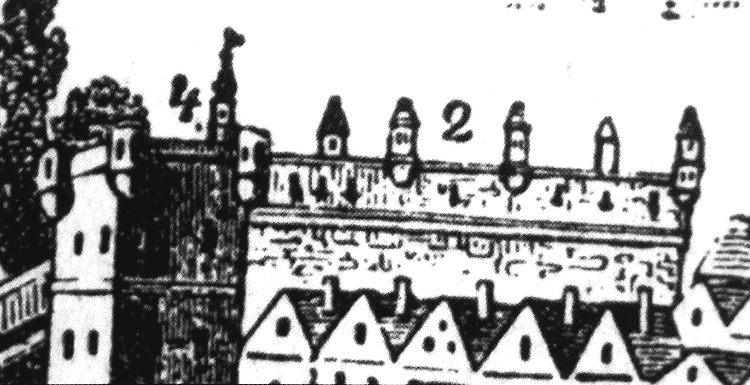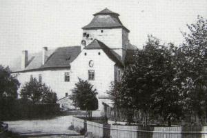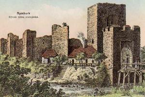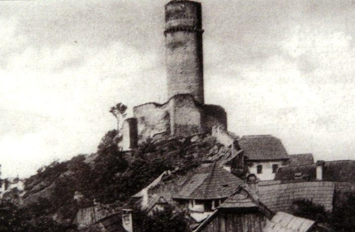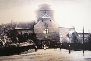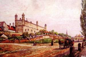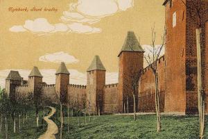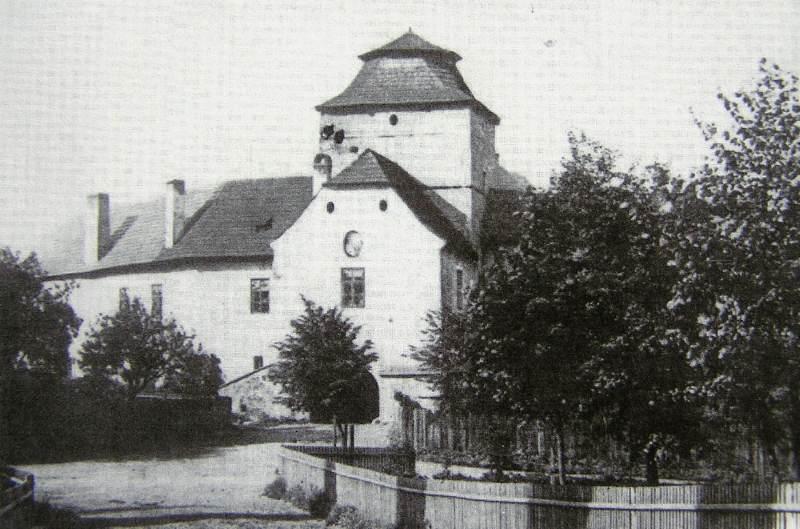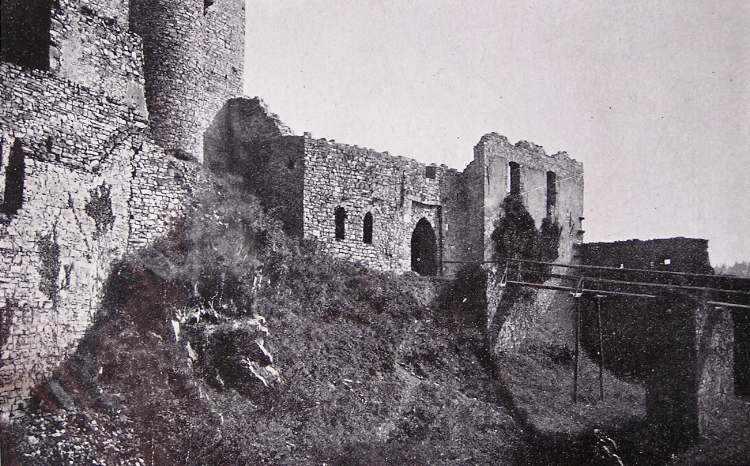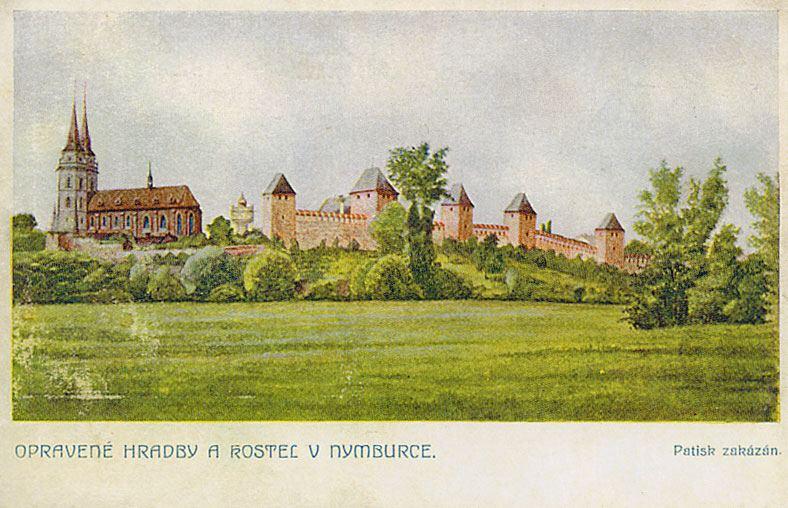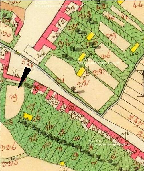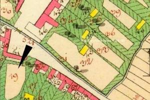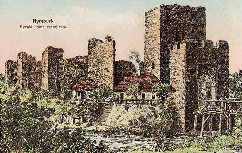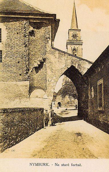 Zde ústil první z mostů přes Labe. Vlevo tzv. Kamenný dům s údajnými pozůstatky královského hradu. V jeho nároží relikt schodiště bývalé brány. Stav před rokem 1917.