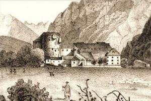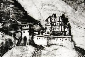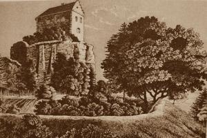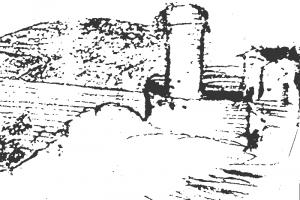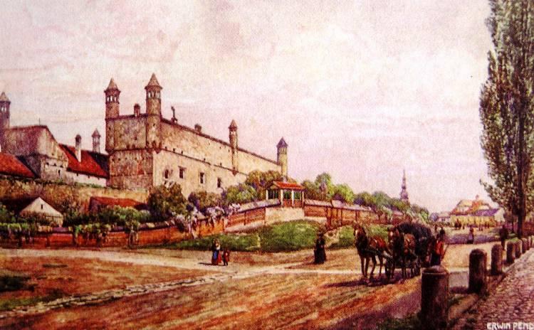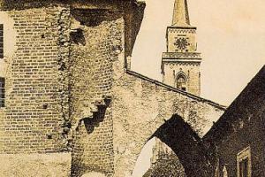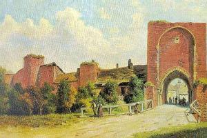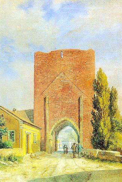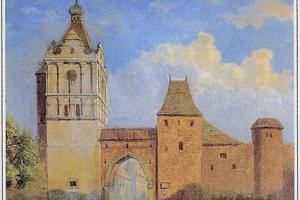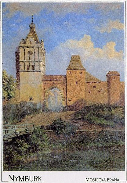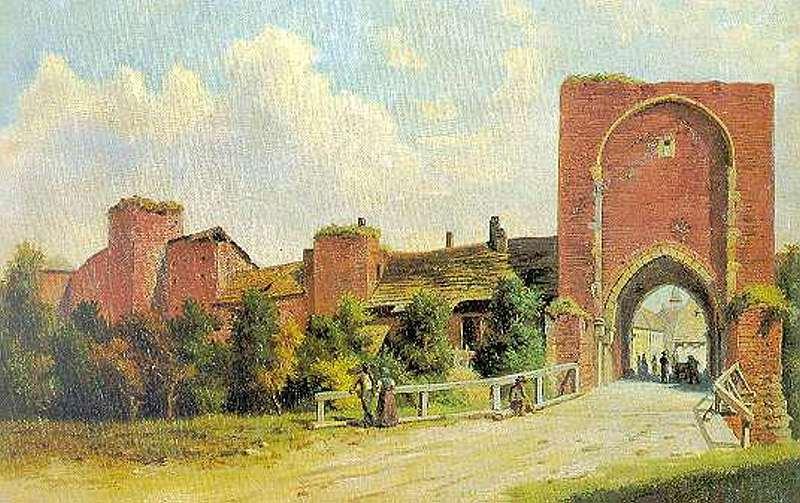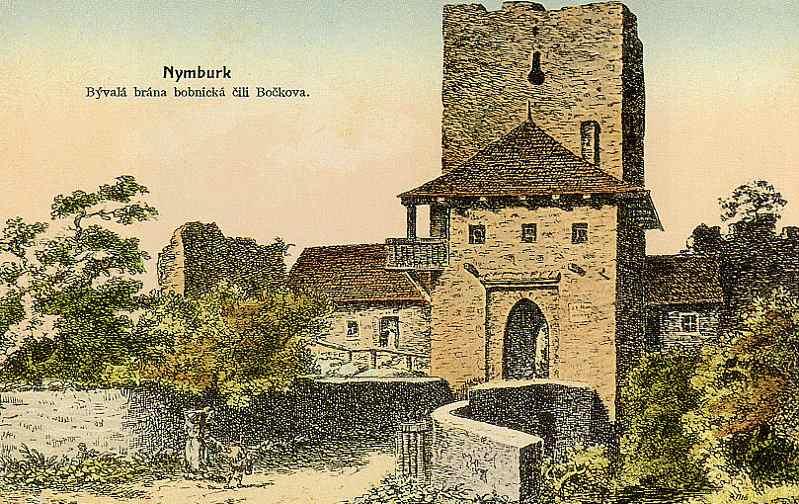 Zbořena 1885, na historickém pohledu patrné zbytky předbraní a lůžka pro padací mříž. Vlevo linie západních hradeb, částečně dodnes zachovalá (viz. ostatní foto).