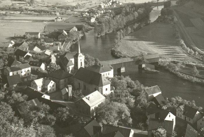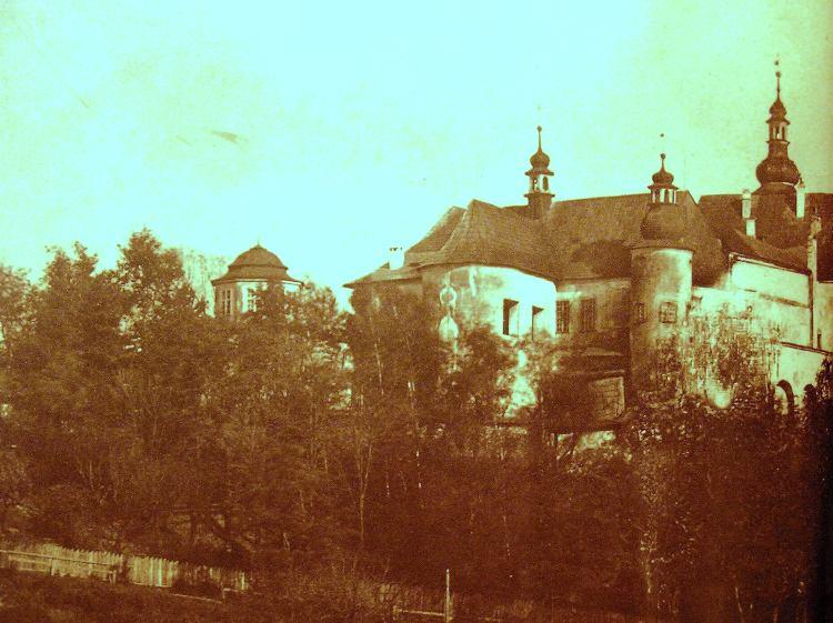 Na fotografii je vidět vzhled zámku před úpravami v roce 2002 se zachovalým východním průčelím. Pohled od severovýchodu.