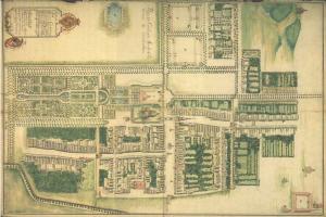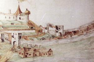 Část městských hradeb s bránami při napojení hradeb na opevnění hradu - 1647