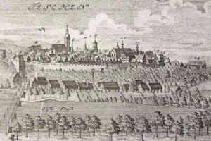 Panorama Těšína na vedutě F. B. Wernera z roku 1735
