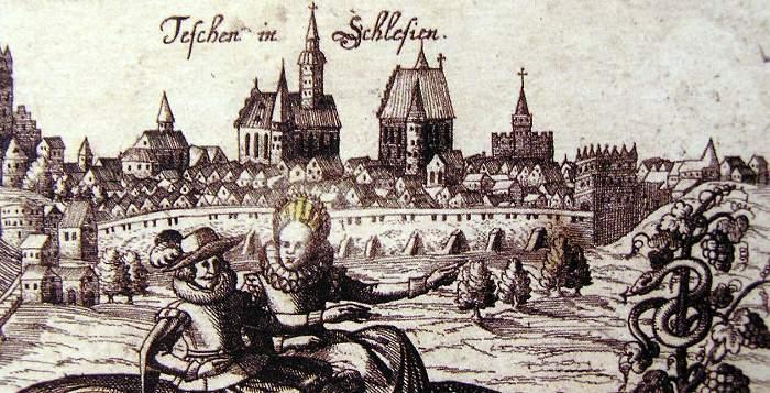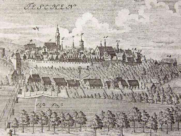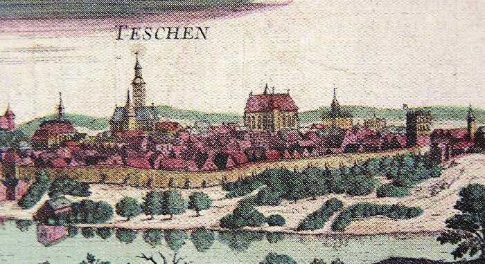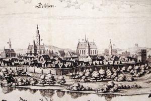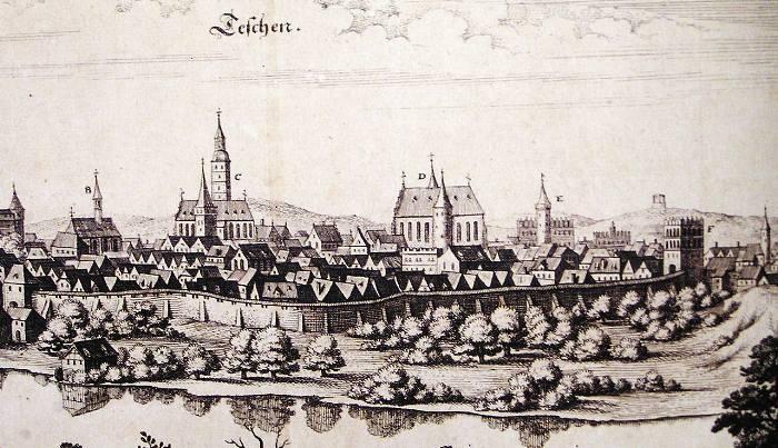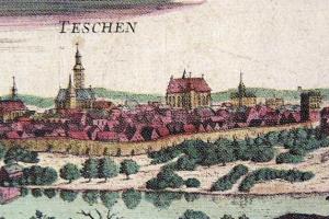 Těšín na mědirytině Matyáše Meriana z roki 1650