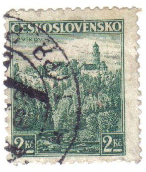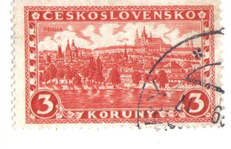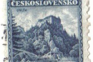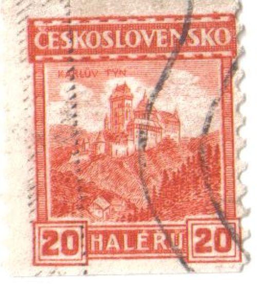 Vyobrazený hrad Karlštejn, na jedné z prvorepublikových známek.