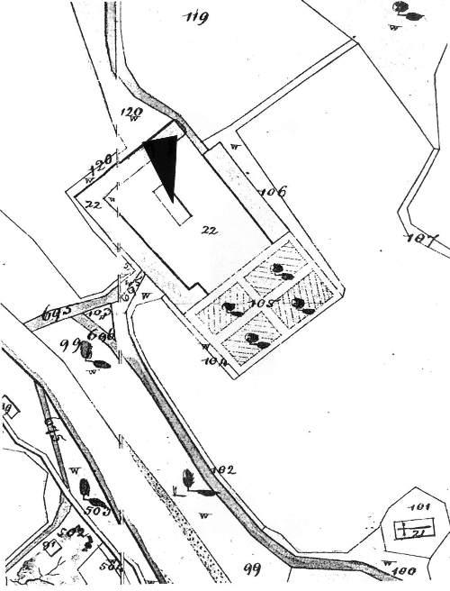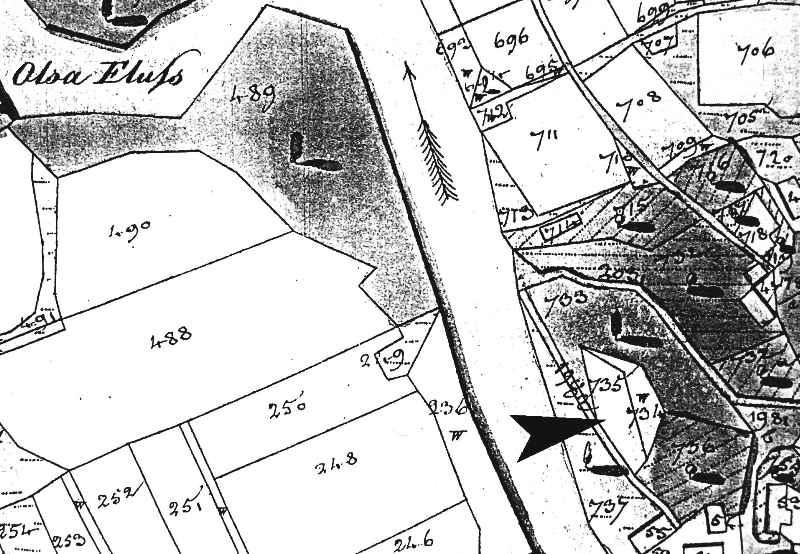 Označení lokality na mapě stabilního katastru ze 30. let 19. století