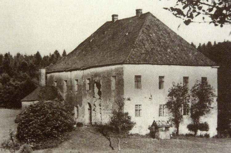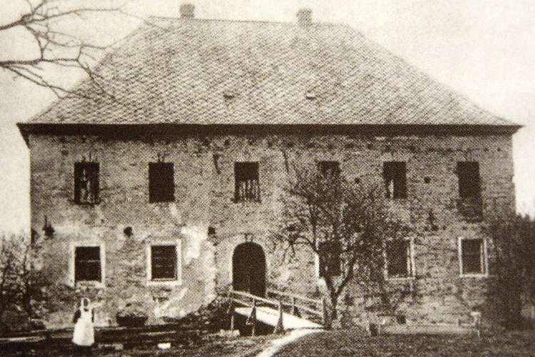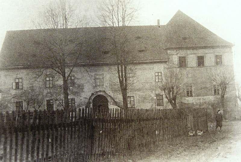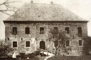 Celkový pohled na tvrz a poplužní dvůr na konci 19. století