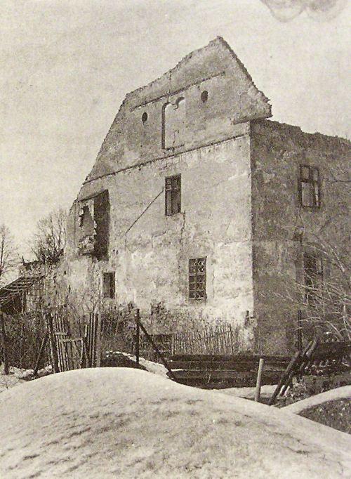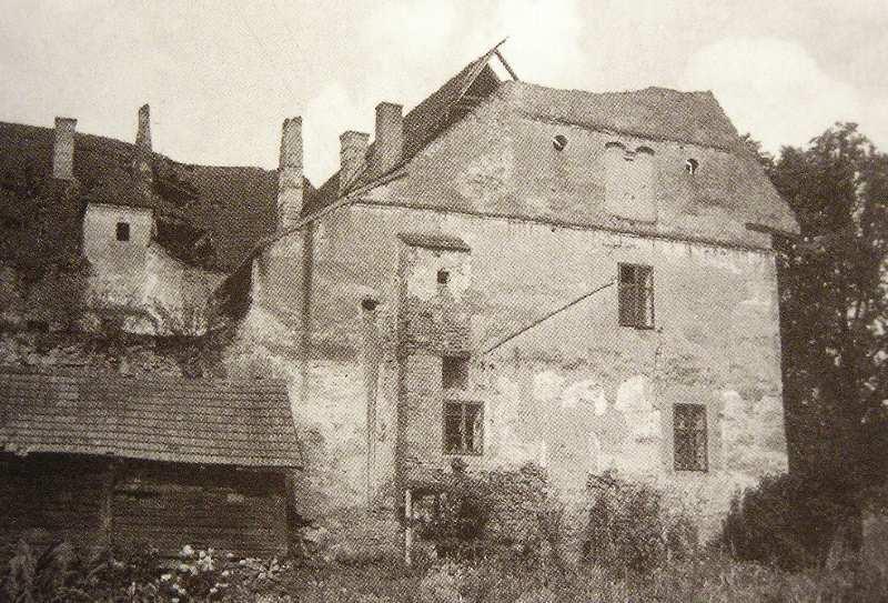 Chátrající zámek v Petřvaldě kolem roku 1957