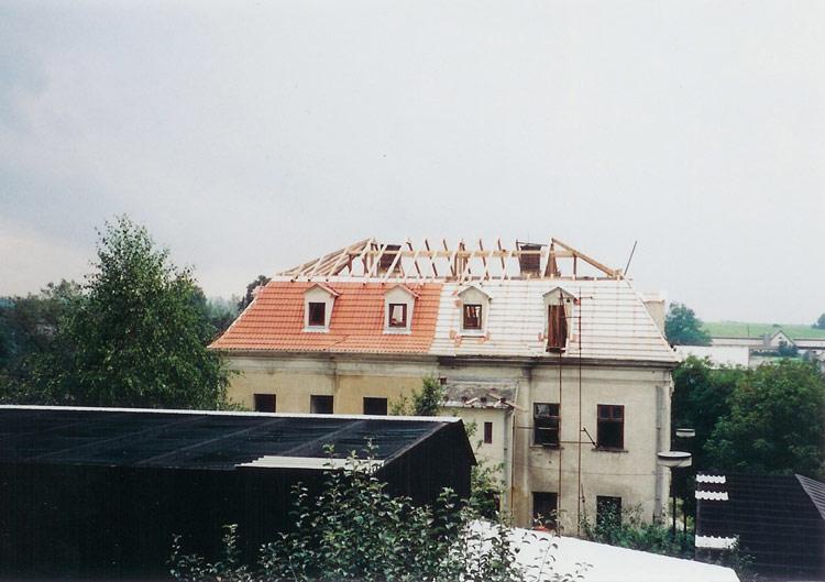 v roce 1995 měla budova ještě štíty a zbytky krovu...