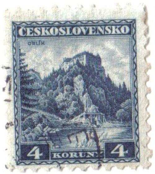 Vyobrazení Orlíku na předválečné známce tehdejšího Československa.