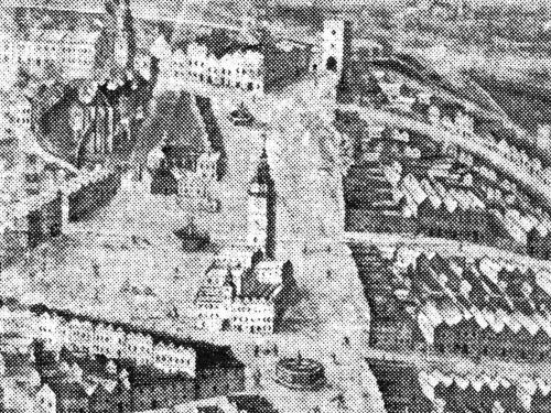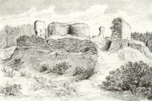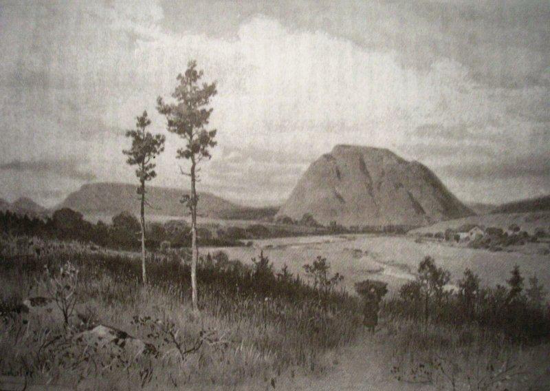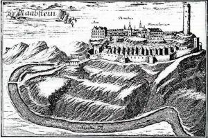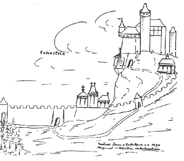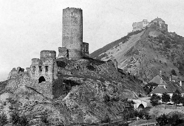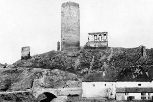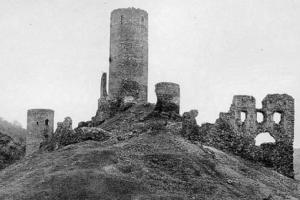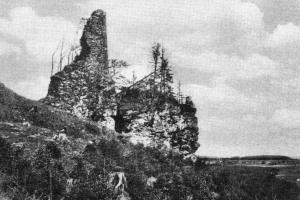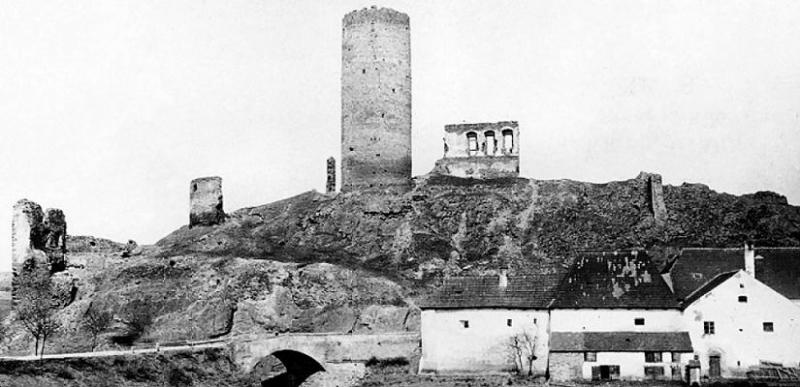 Jádro hradu Kberštejna se střepem hlásky na skalnatých sucích - fotografie z poloviny 20. století