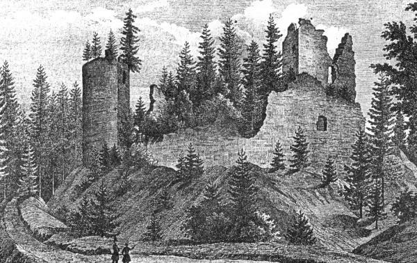 Jak je možno vidět, v polovině 20. století bylo okolí hradu odlesněno a Koberštejn tak doslova čněl do okolní krajiny.