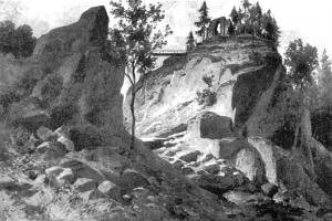 Útulna Arcivévody Albrechta na kreslené pohlednici z roku 1898