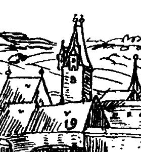 věž na výřezu z veduty Jana Willenberga z r. 1602