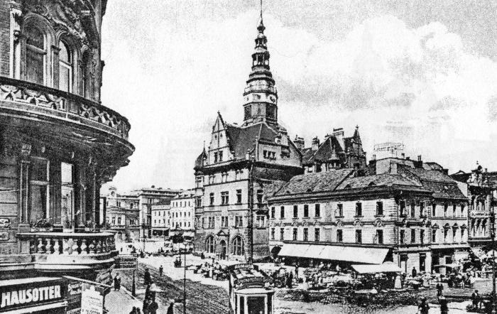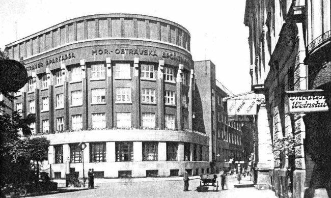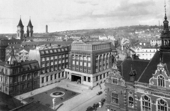 Bývalá Moravskoostravská spořitelna na náměstí Dr. E. Beneše v r. 1930