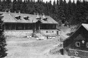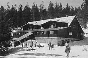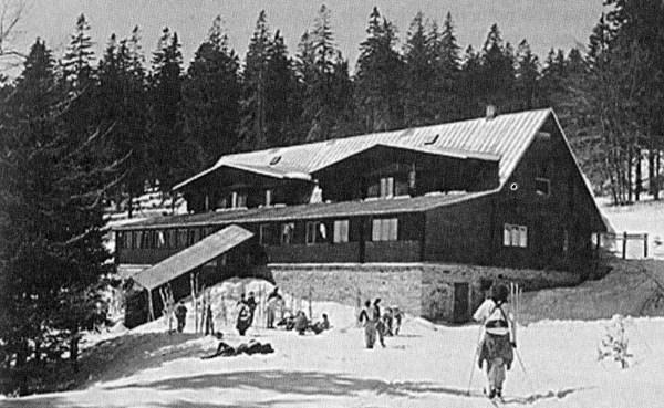 Pohled na Alfrédovu chatu kolem roku 1935, kdy již sloužila jako turistická chata