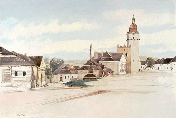 Spišskobelanské náměstí s farním kostelem a zvonicí