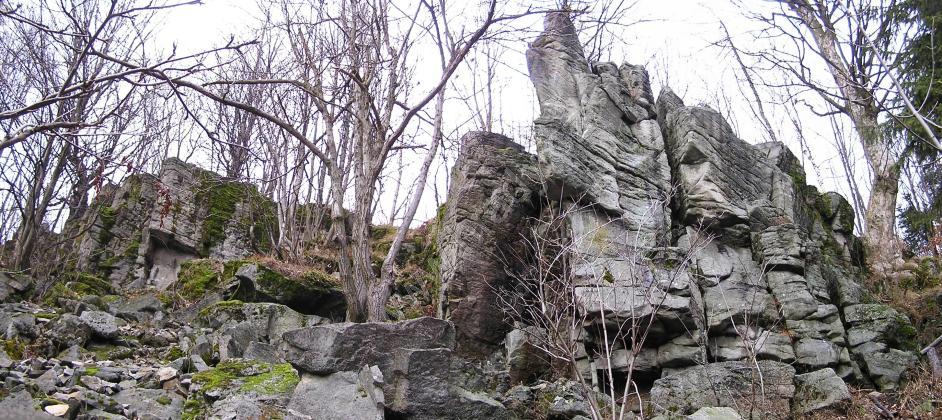 pohled od turistického chodníku na Horní mazácké skály