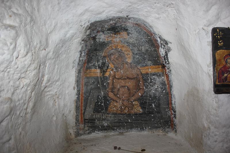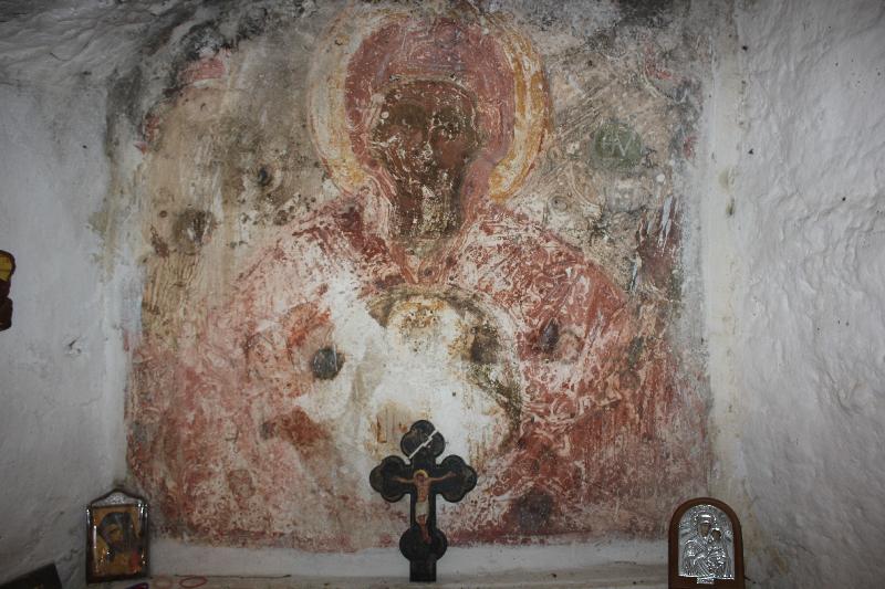 nástěnná oltářní malba Matka Boží Znamení z 18. stol. v podzemí.