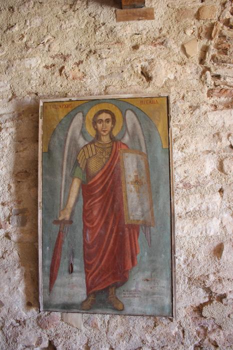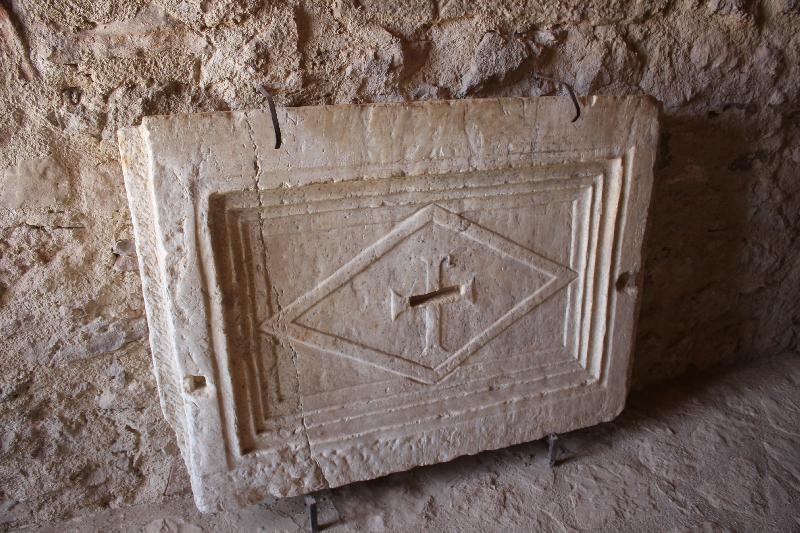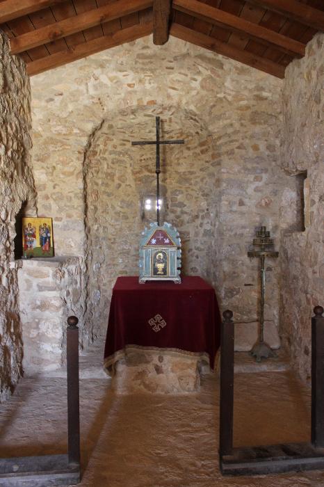 Kamenná Svatá Trápeza (prestol) v oltářní apsidě chrámu sv. archanděla Michaela