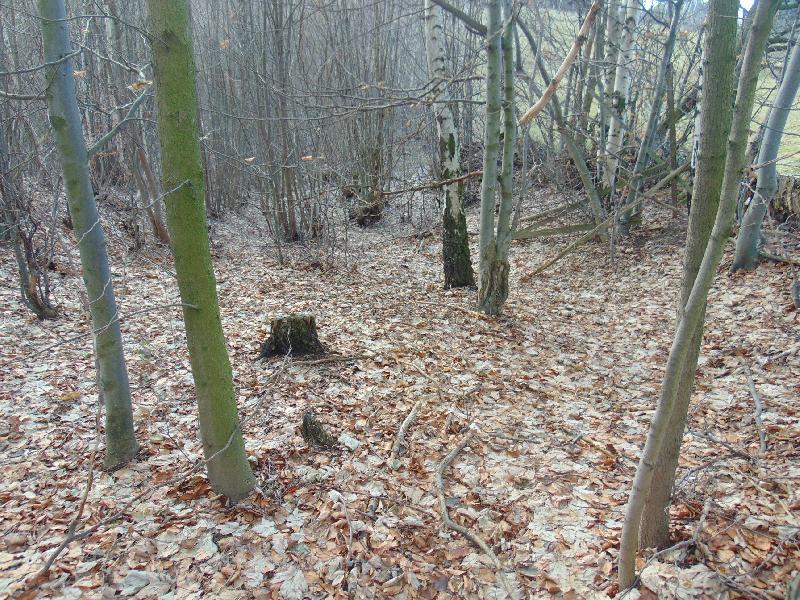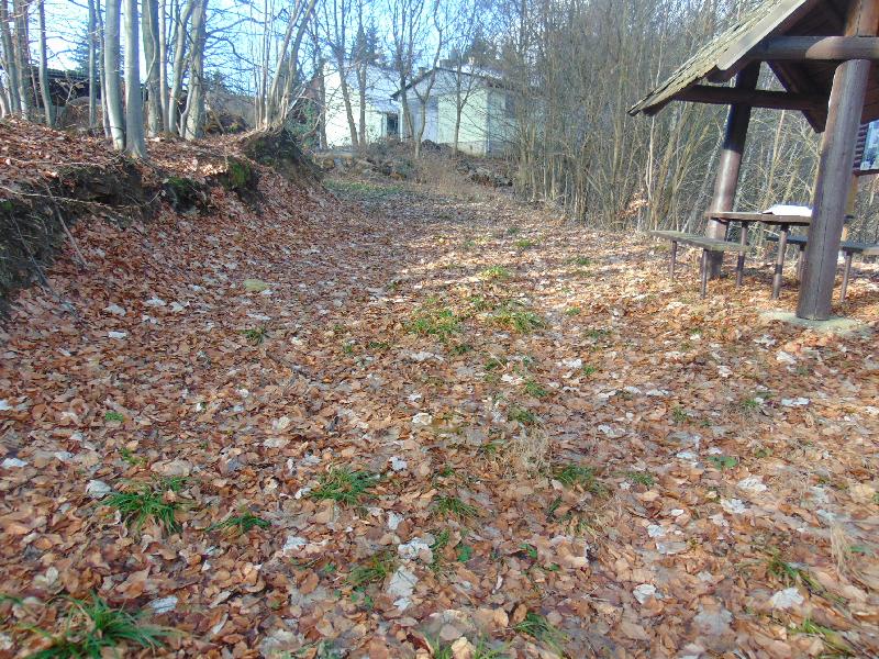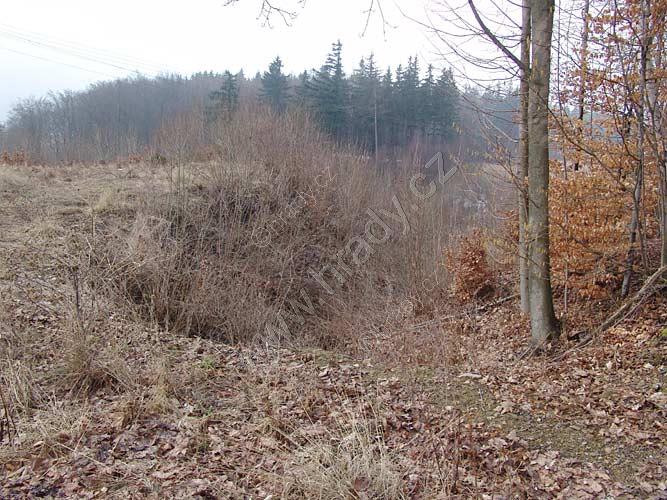 Jv.hranice plochy hrádku, hrádek se nacházel vpravo