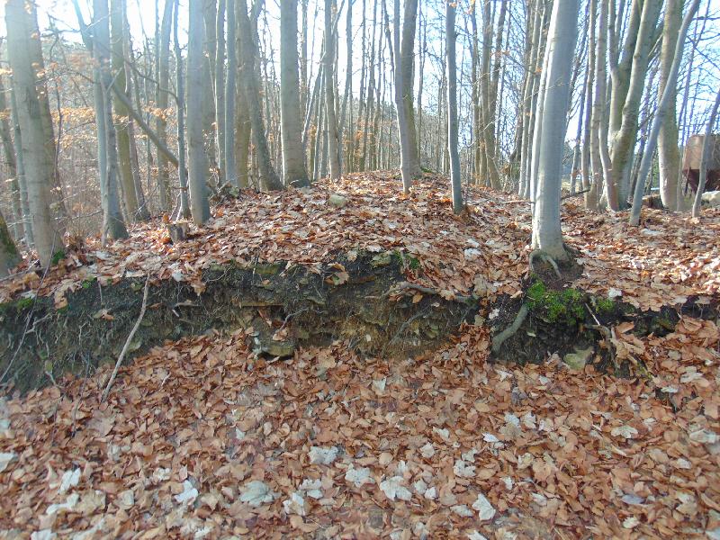 Úvozová cesta, kopírující sz.příkop, vpravo sz. val