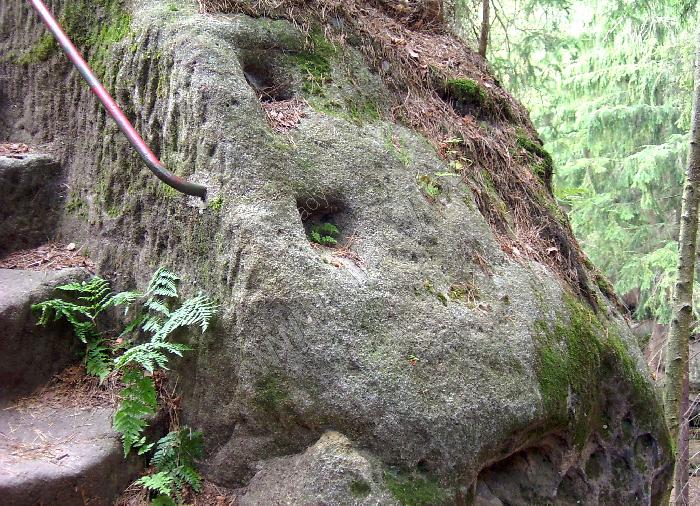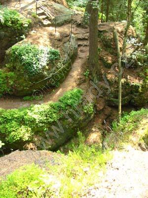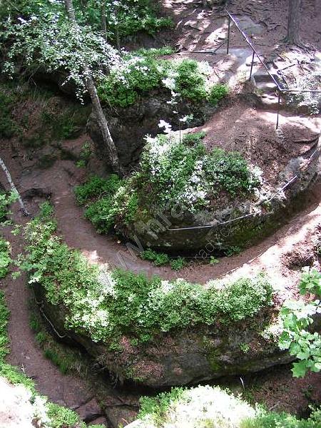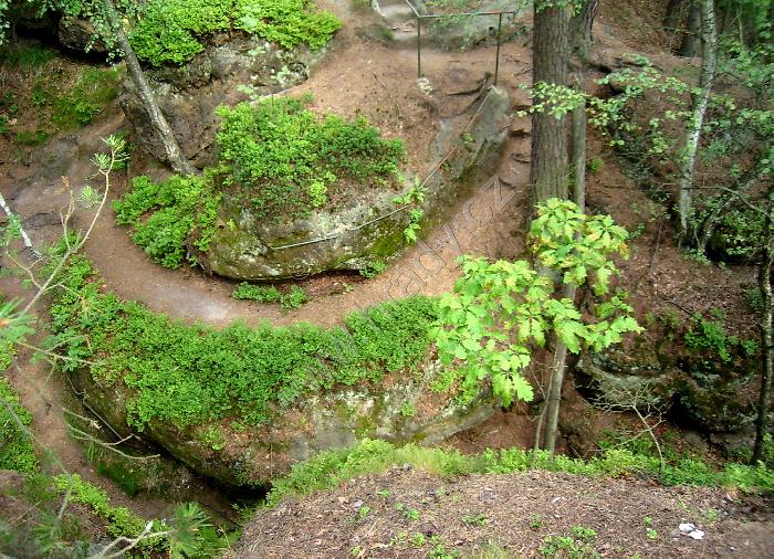 Byl uměle prohlouben a rozšířen - i dnes se cesta složitě klikatí, stoupá strmými schůdky apod.