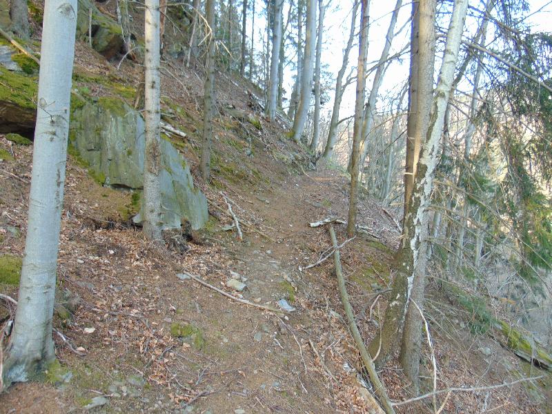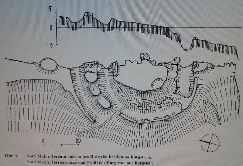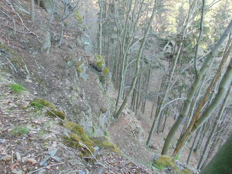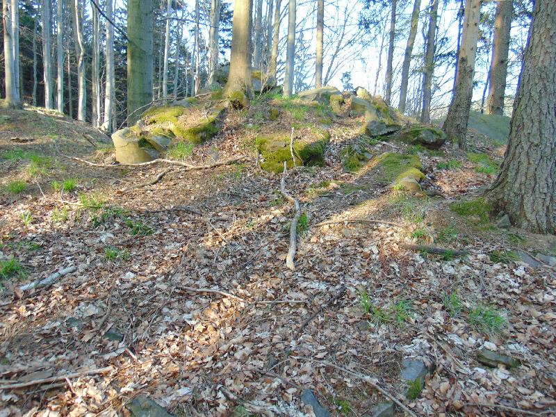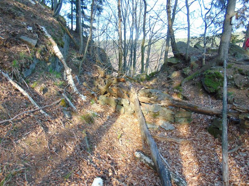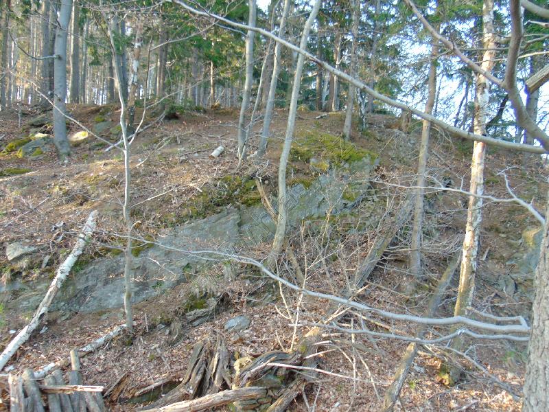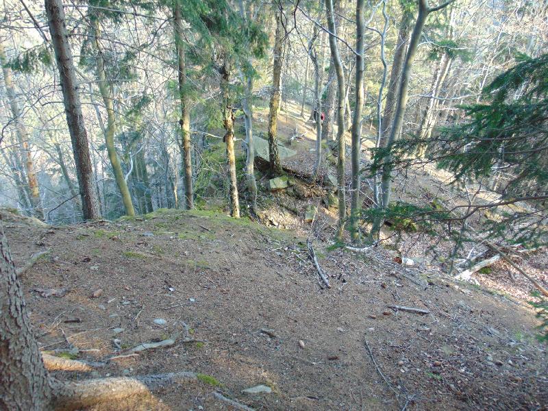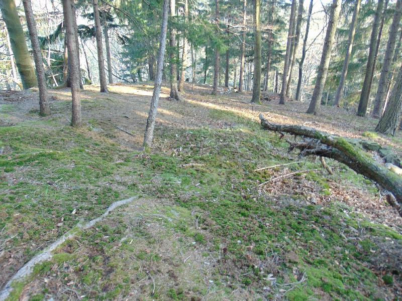 Odstupňovaný skalní val mezi prvním /vlevo/ a druhým /vpravo/ příkopem na severu
