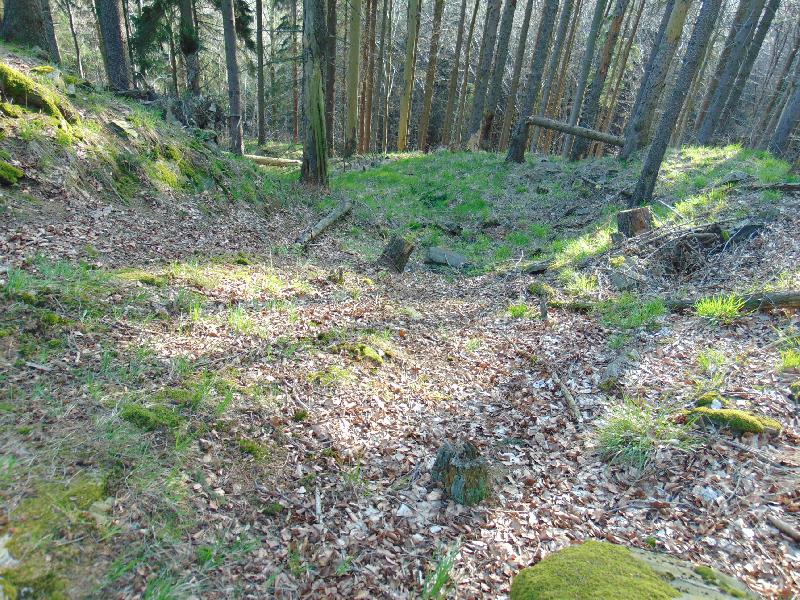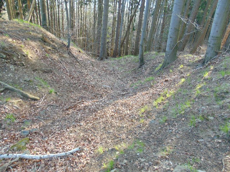 První sev. příkop přetínajíécí přístupovou šíji /vlevo val, vpravo šíje/