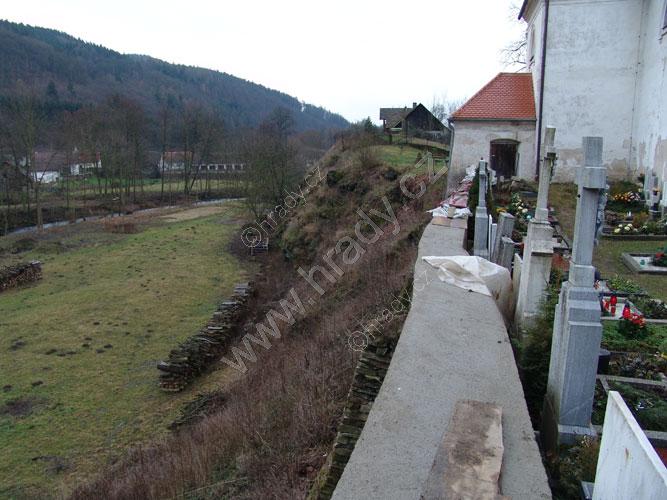 Vyvýšené místo na jižní straně ostrožny, kde stálo opevněné sídlo