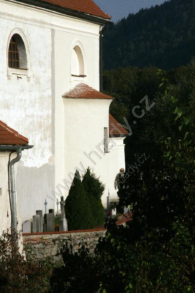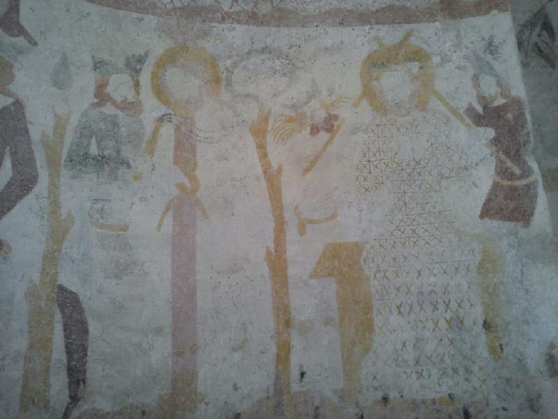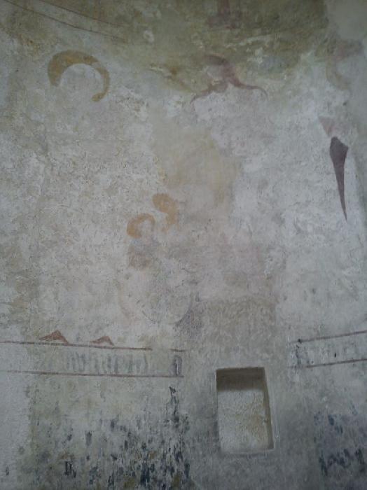 Západní apsida presbyteria s freskami znázorňujícími pašijové motivy