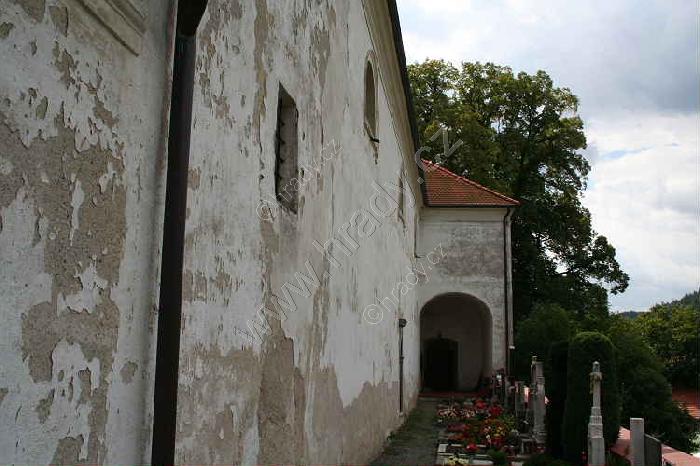 Pohled k hlavnímu vstupu do kostela Nanebevzetí Panny Marie
