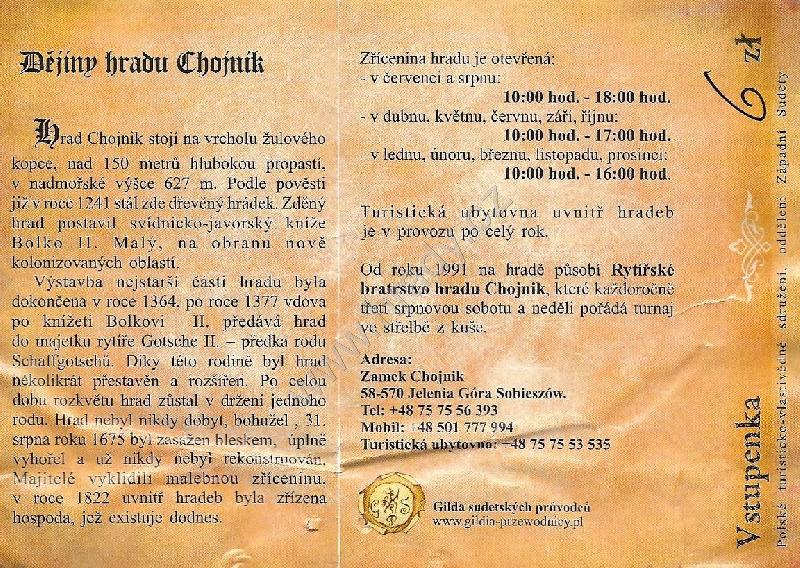 Hrad Chojnik - vstupenky do hradu jsou i v češtině