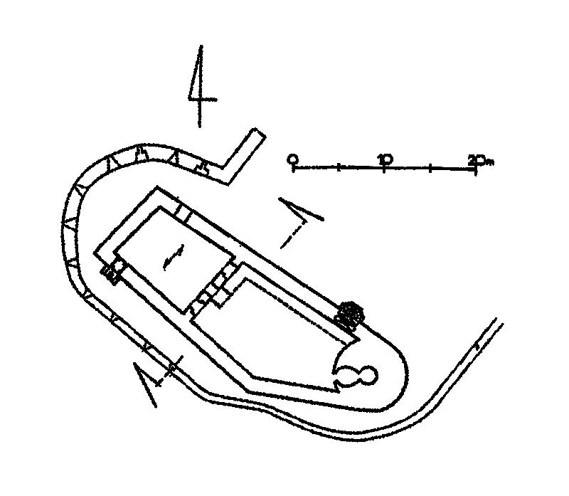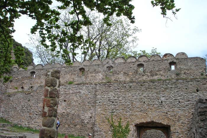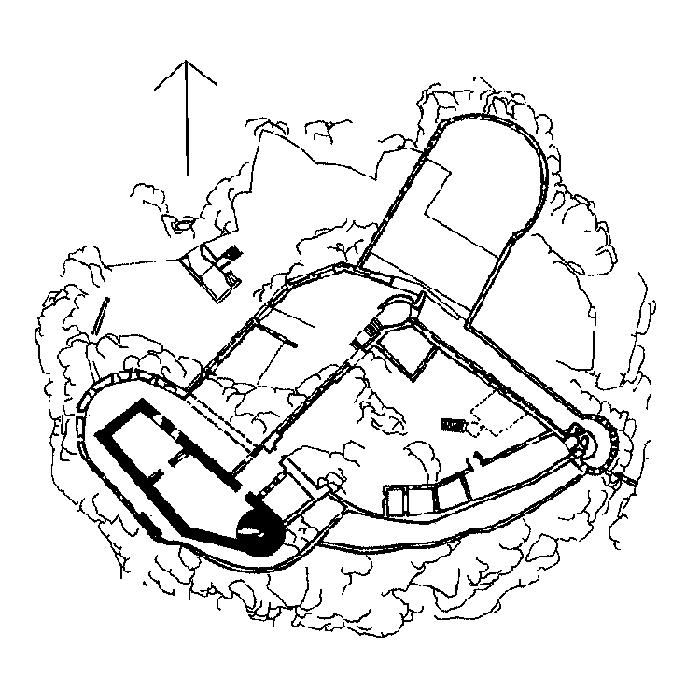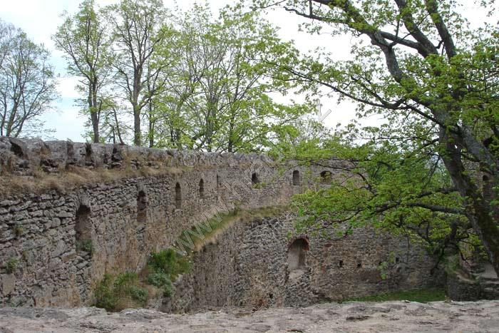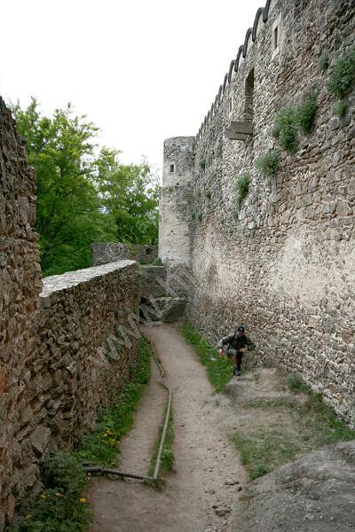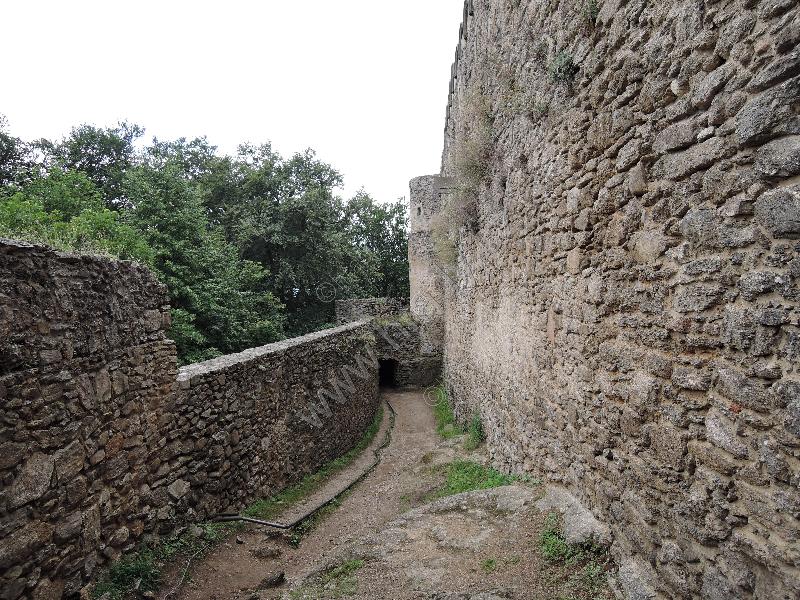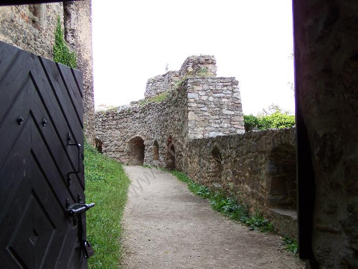 Hradba s výpadní brankou ve skalní mezeře jižně od hradu.