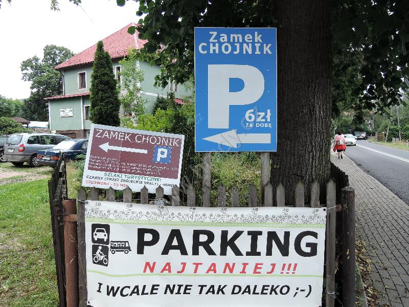 Hrad Chojnik - v obci Sobieszów pod hradem je několik parkovišť