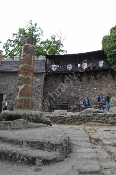 Pranýř z pískovcových kvádrů na nádvoří předhradí