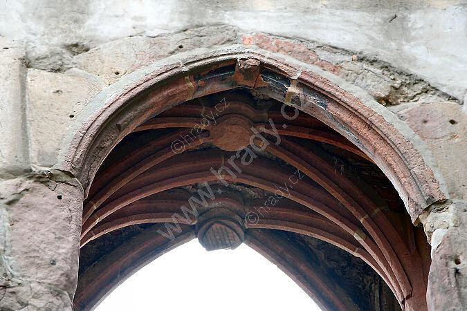 Zbytky kaple sv. Jiří a sv. Kateřiny ze 14. století - pohled z nádvorní strany