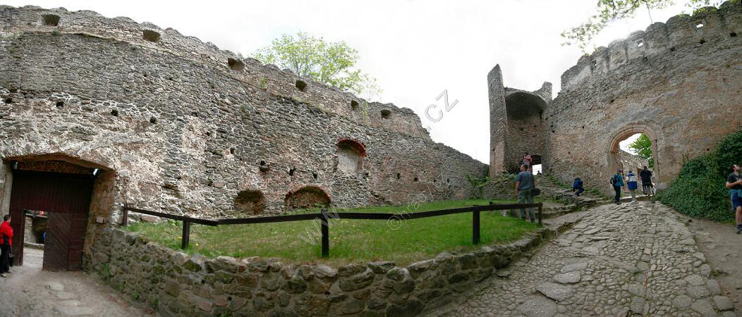 nádvoří a palác jádra v pohledu z ochozu bergfritu