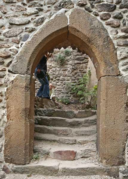 Pohled z bergfritu na nádvoří a vstupní portál do přízemí paláce